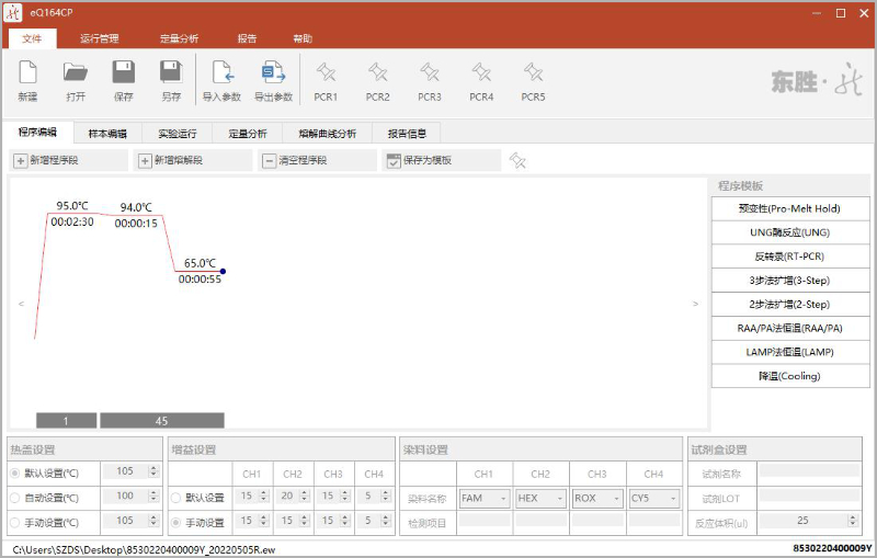 系统内置多种常用的PCR程序模版,程序设计方便快捷。
