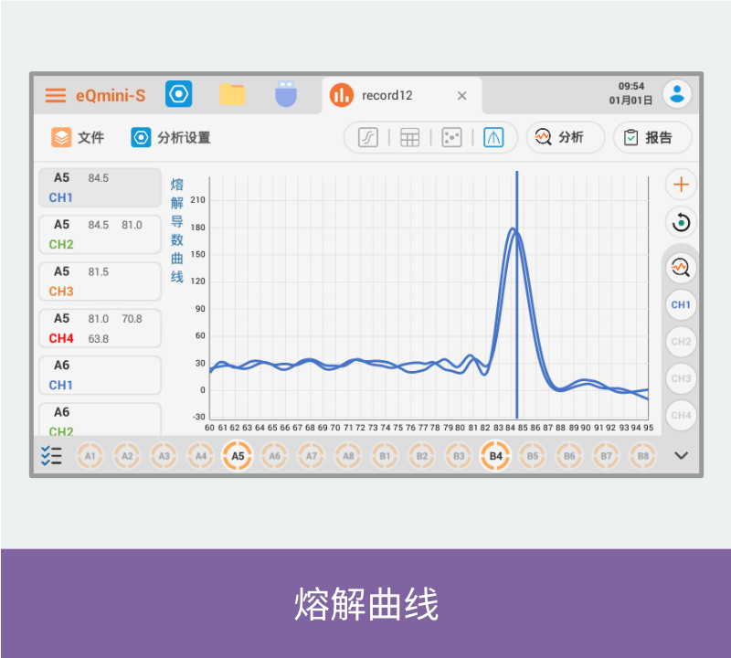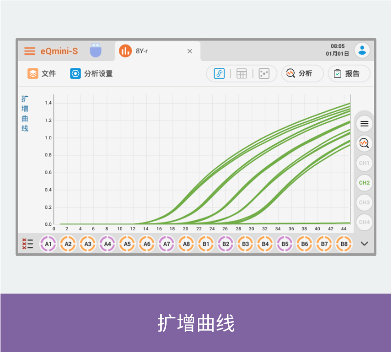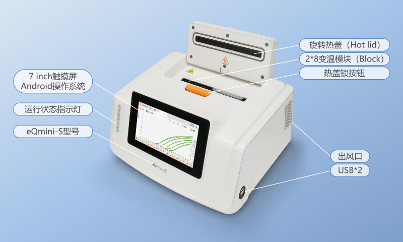 eQmini-S是在eQ1600系列经典机型的基础上精心设计的一款高性能机型,有2色和4色荧光两个规格。该款仪器自带Android触控屏,搭载自主研发操作分析软件,无需电脑,独立运行。程序编辑、运行、查看以及数据分析、报告打印、手机监控等一机搞定。